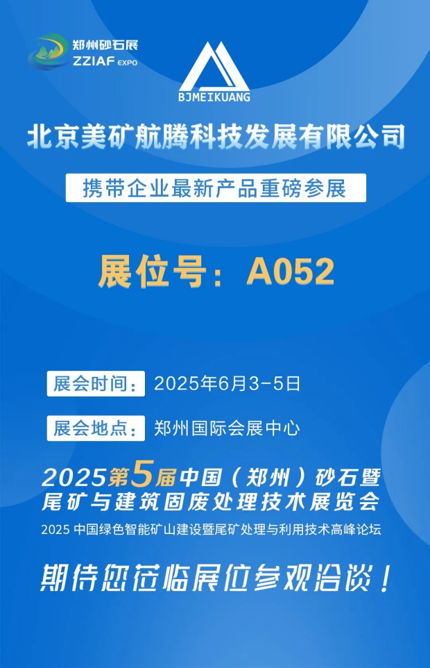 北京美礦航騰科技發(fā)展有限公司誠摯邀請您蒞臨 2025第五屆中國(鄭州)砂石及尾礦與建筑固廢處理技術(shù)展覽會,與我們共話行業(yè)前沿技術(shù),探討合作新機(jī)遇!